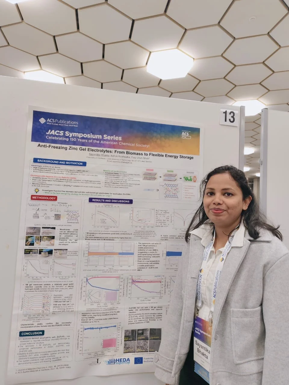 On 11 January 2026, Sayantika Bhakta, a researcher from Luleå University of Technology and HEDAsupercap consortium member, participated in the prestigious ACS 150 JACS Symposium, marking 150 years of the Journal of the American Chemical Society. Her research was one of only a few selected from 124 posters to be featured as a lightning talk, providing a platform to present highlights of HEDAsupercap’s scientific work to a global audience.